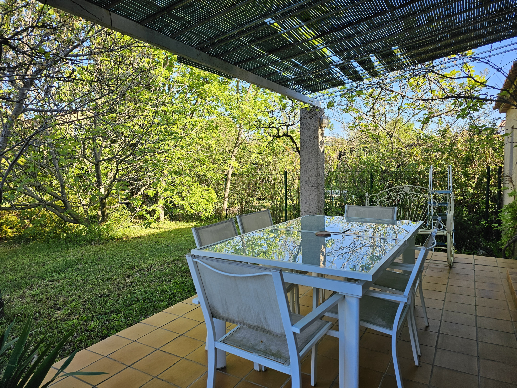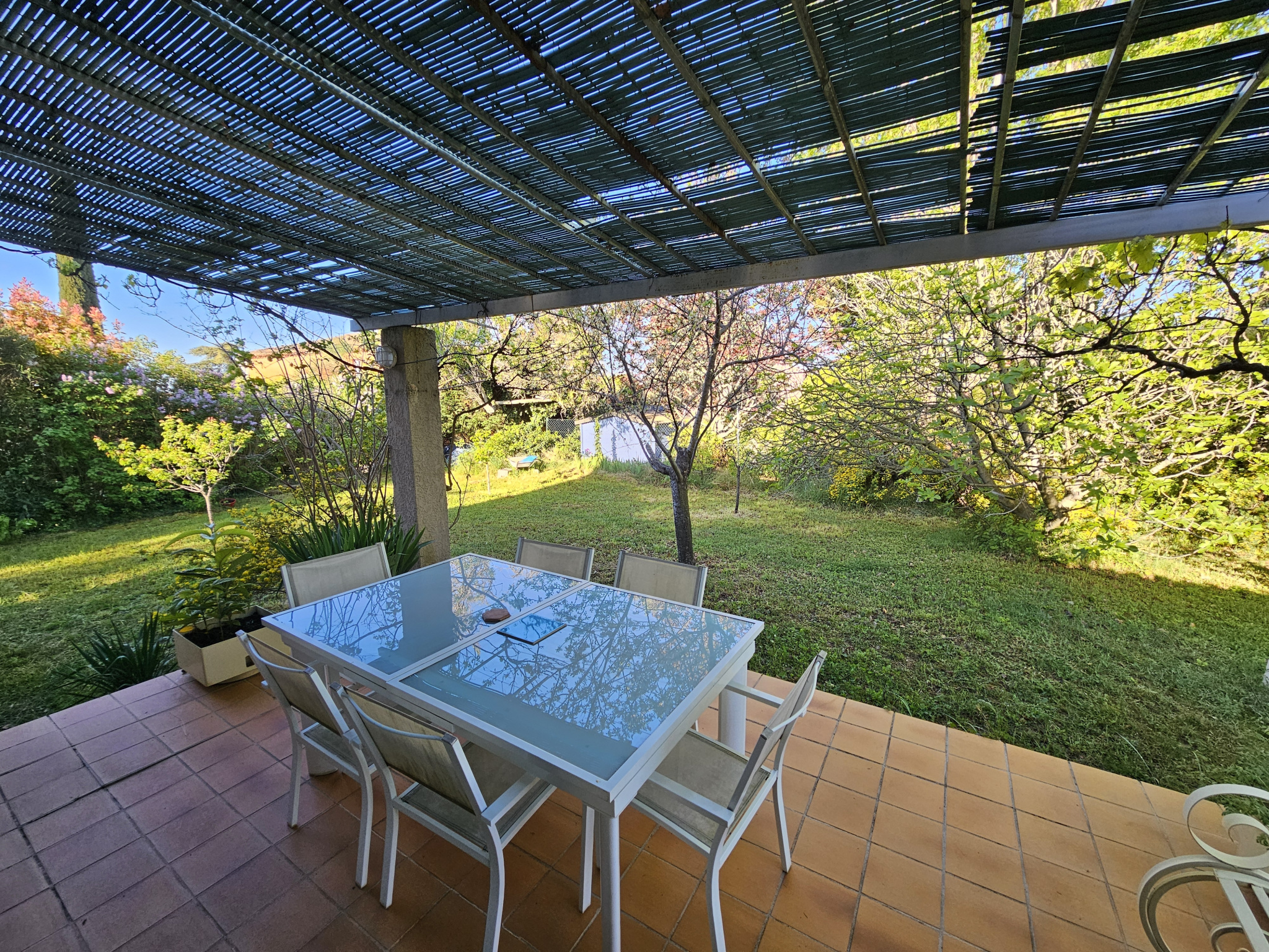 L'Agence Natis vous propose à l'Achat, à 800 m du centre ville de Saint Cannat, une maison traditionnelle de 110 m² environ, sur un terrain de 573 m² environ. La maison se compose d'un séjour avec plafond cathédrale, traversant, cuisine ouverte donnant sur la terrasse avec tonnelle, deux chambres, une salle de bains, wc, buanderie et garage attenant. Un escalier nous mène à l'étage et à un bureau ouvert, deux chambres, wc indepéndants. Arrivées d'eau prête pour une deuxième salle de bains. A l'extérieur un terrain de 573 m² joliment arboré, avec des arbres fruitiers également, sans vis à vis. Deux terrasses, une à l'avant de la maison avec un auvent, une à l'arrière de la maison, avec une tonnelle en fer forgé. La maison se situe au fond d'une impasse, au calme. Les informations sur les risques auxquels ce bien est exposé sont disponibles sur le site Géorisques : www.georisques.gouv.fr Contact Laurence Christophe ayant le statut Agent commercial RSAC 503284333 _Salon de Provence. Tel 06.. 46.. 80.. 83.. 43..